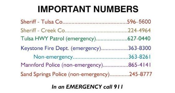 Please do not post your contact information or exact house number, instead for your protection, message your contact information to Shelly Long KNW Coordinator on FB or email it to keystoneneighborhoodwatch@gmail.com, and post our number as the contact 918-246-6644. This is for your protection since this is a public page. You do not have to be a member of KNW to use the Lost Pets page. We reserve all rights to delete any inappropriate material without warning. Absolutely no soliciting.